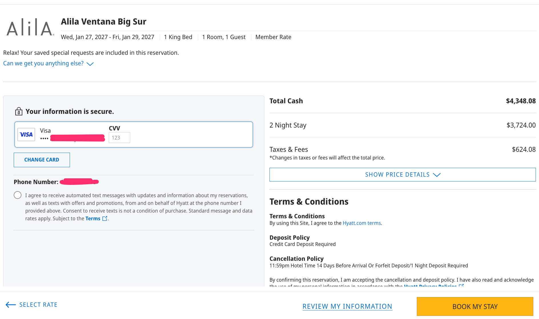 There are nights available Jan 2027 (10 months from time of writing) at Alila Ventana Big Sur for 45,000 points per night.